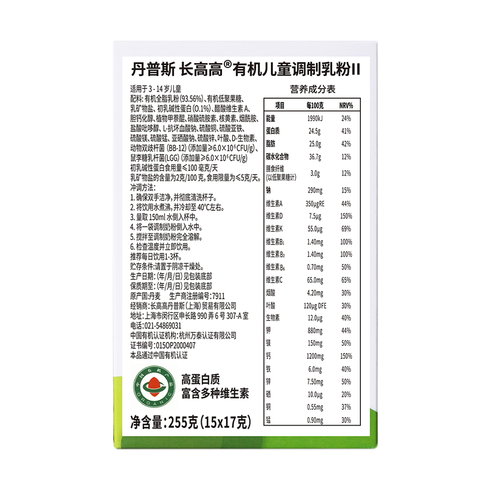Denps Highgogo丹麥原裝進口有機兒童成長牛奶粉1盒裝 2.0新品